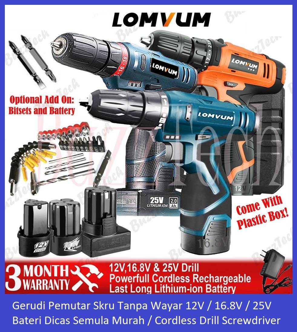 Hot Item Gerudi Pemutar Skru Tanpa Wayar 12v 16 8v 25v Bateri Dicas Semula Murah Cordless Drill Screwdriver Shopee Malaysia