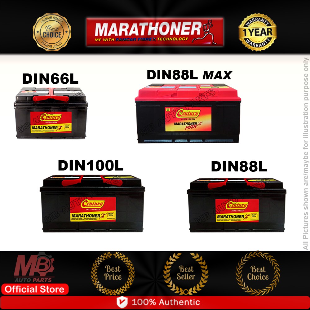 Century Marathoner Din88l Din66 Din100l Heavy Duty Mf Battery Car Battery Bateri Kereta Shopee Malaysia